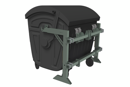The BIN BEAR 1 waste bin transport device has been designed as an attachment for a rear power lift (tractor). Either one waste container with a volume of 660 l - 1,100 l or two waste bins (according to DIN EN 840) of 240 l each can be transported.